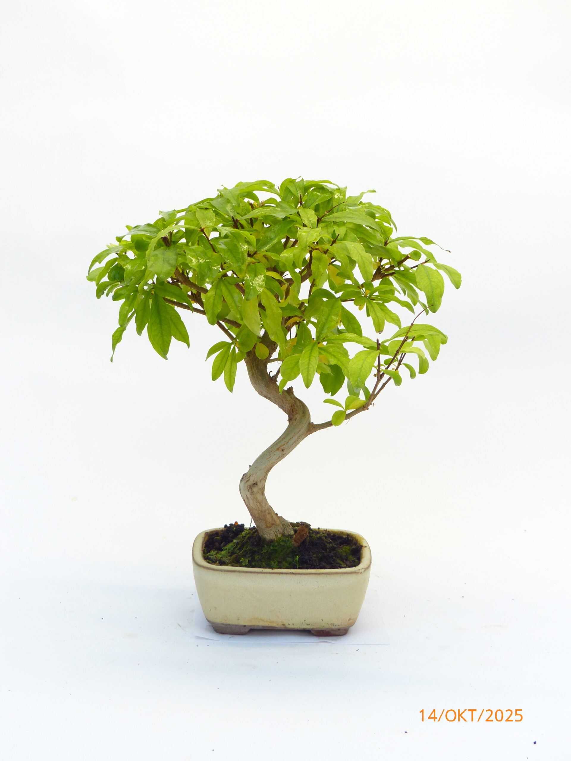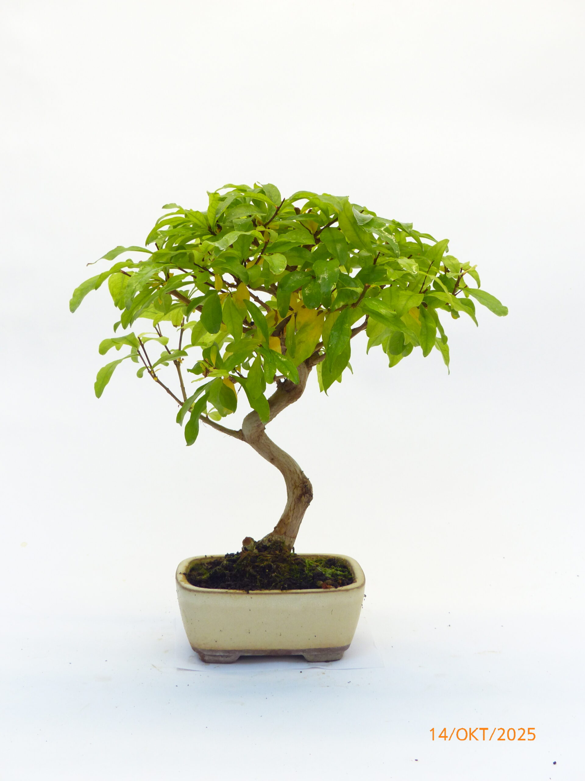 Der Granatapfel lässt sich leicht durch schneiden formen, bekommt reizvolle orangefarbene Blüten und Früchte. Da er sich leicht verzweigt, kleine Blätter und Blüten bekommt, lassen sich leicht eindrucksvolle Bonsai gestalten.